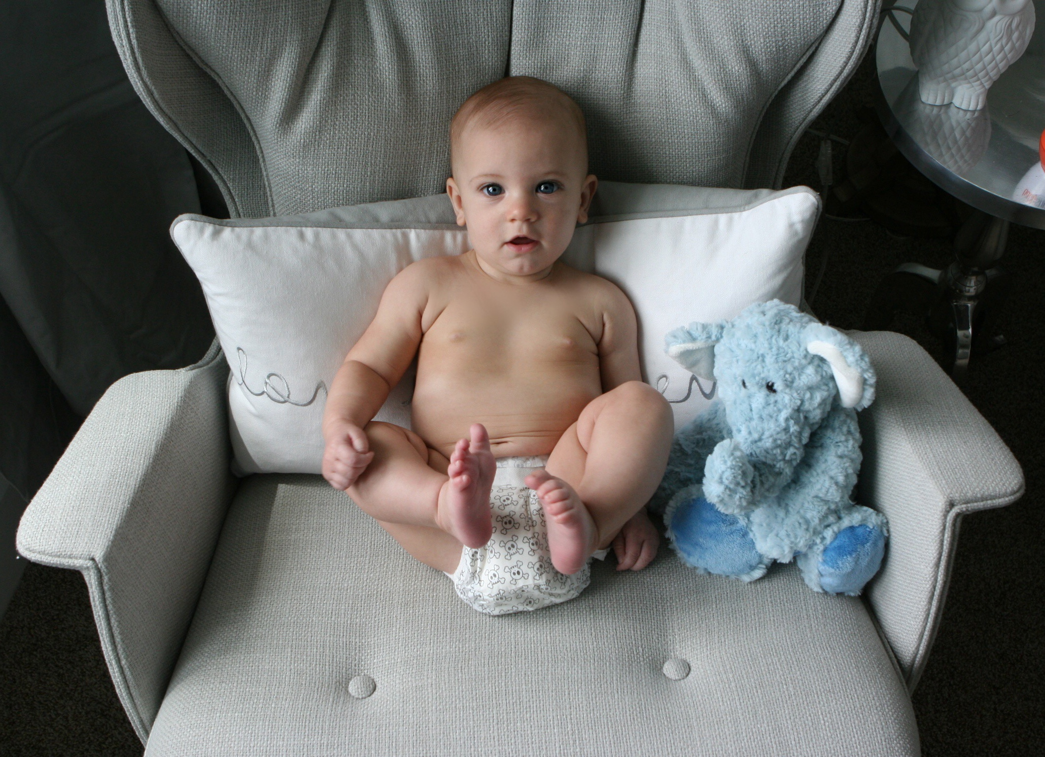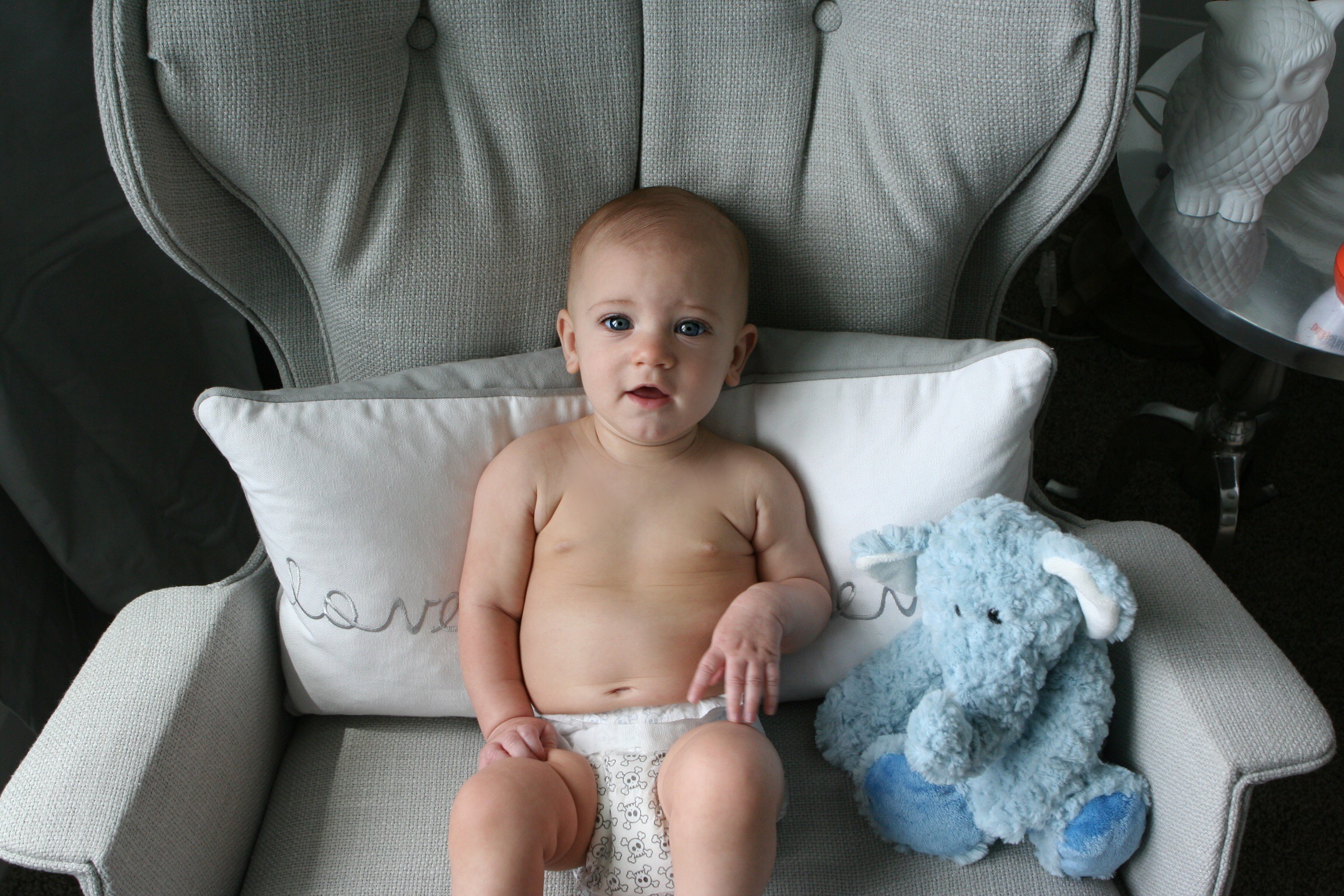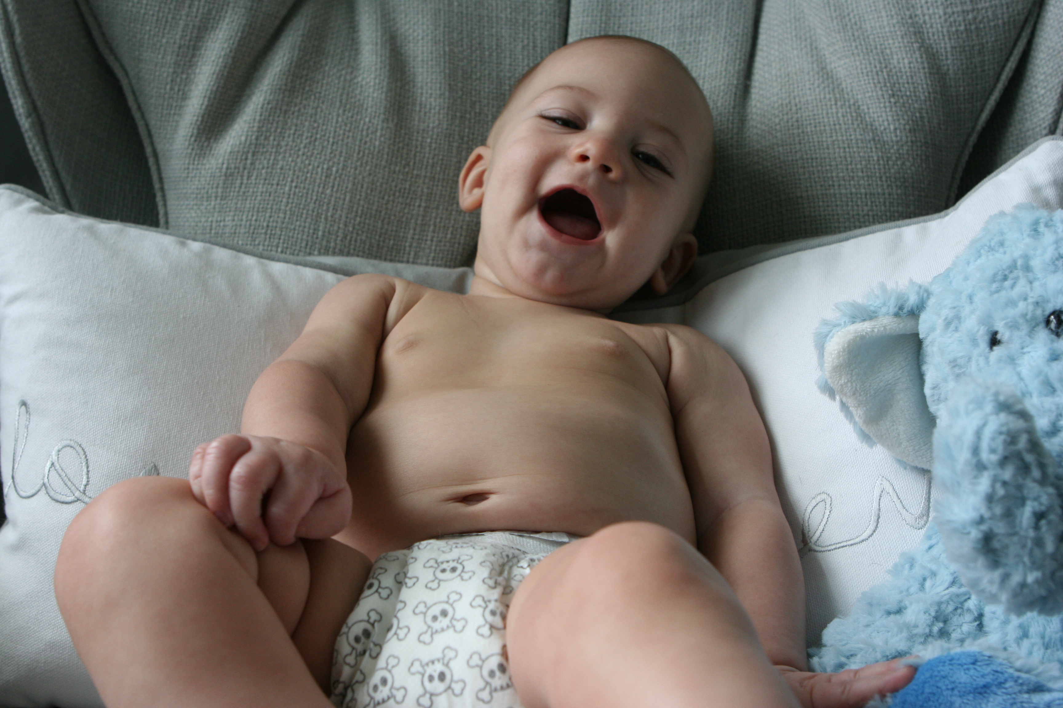 He is beyond alert.  He is fully engaged with any and all interaction people are willing to give him.  He smiles so big and lets out loud giggles!  It’s seriously my favorite thing so far… the giggles.  It makes my heart swell up about 10x’s it’s size.  Totally bursting with happiness!